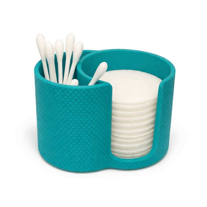 Stylowy i praktyczny organizer łazienkowy na patyczki higieniczne oraz płatki kosmetyczne. Nowoczesny design sprawia, że doskonale komponuje się z każdą aranżacją łazienki, toaletki lub salonu kosmetycznego.